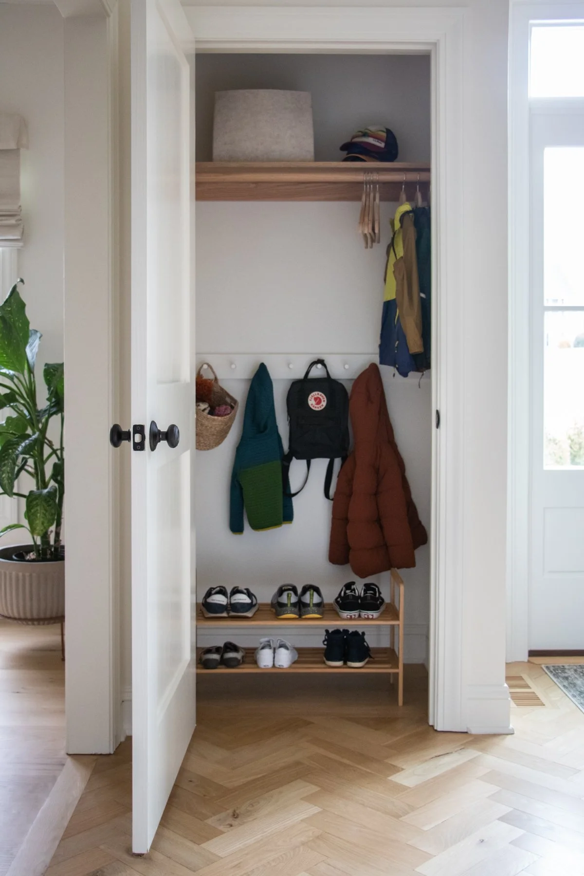 Goal: create an organized coat closet that is functional for the kids to encourage independence.